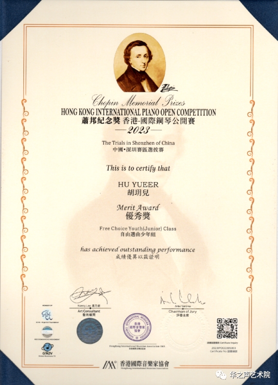 肖邦纪念奖香港国际钢琴公开赛优秀奖