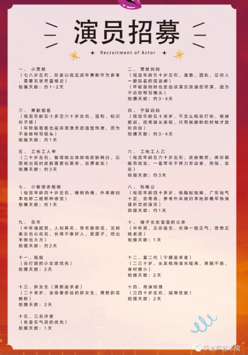 电影《深城树下》联手华之声艺术院招募演员