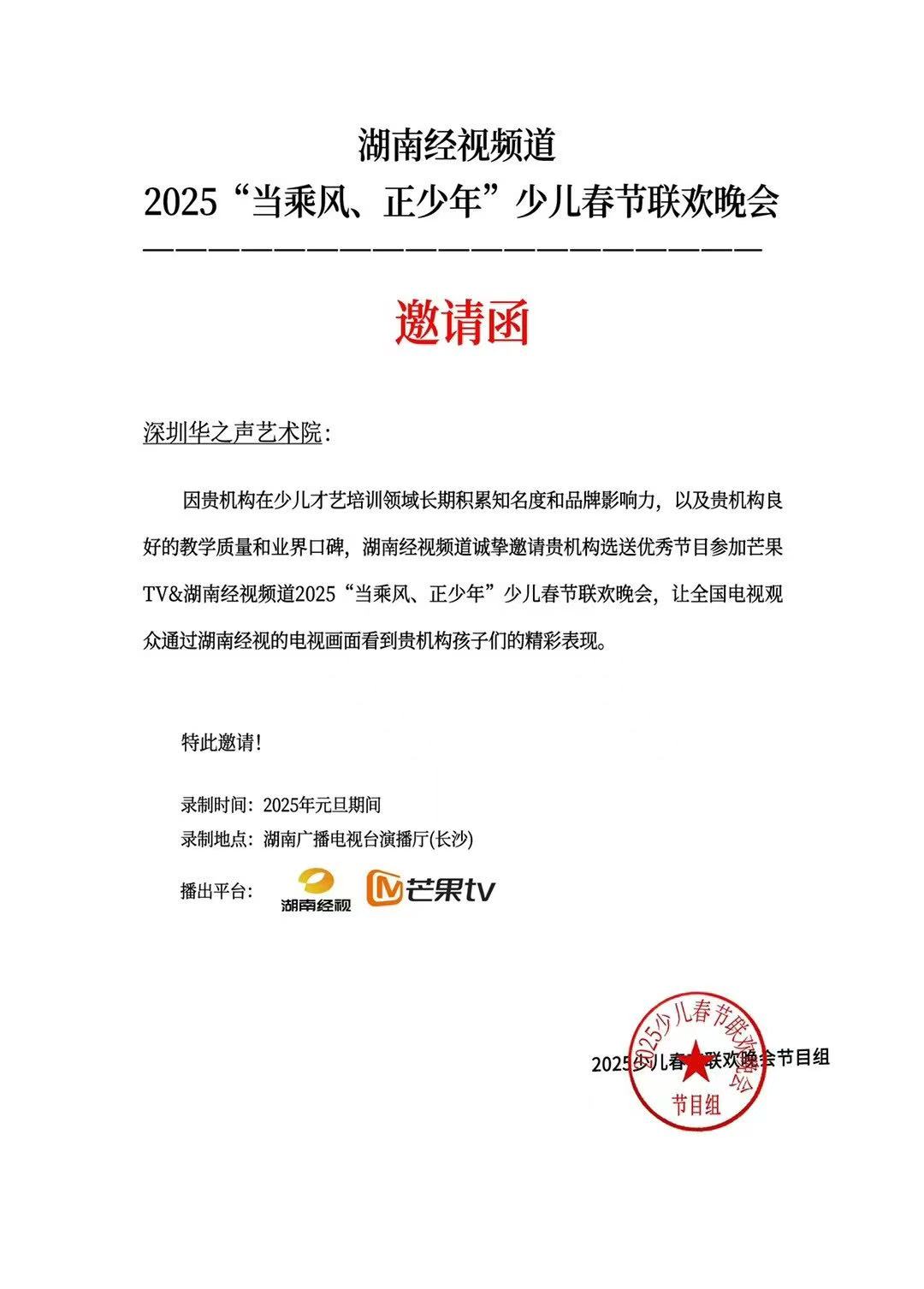 湖南卫视2025年少儿春晚节目征募中,报名从速……